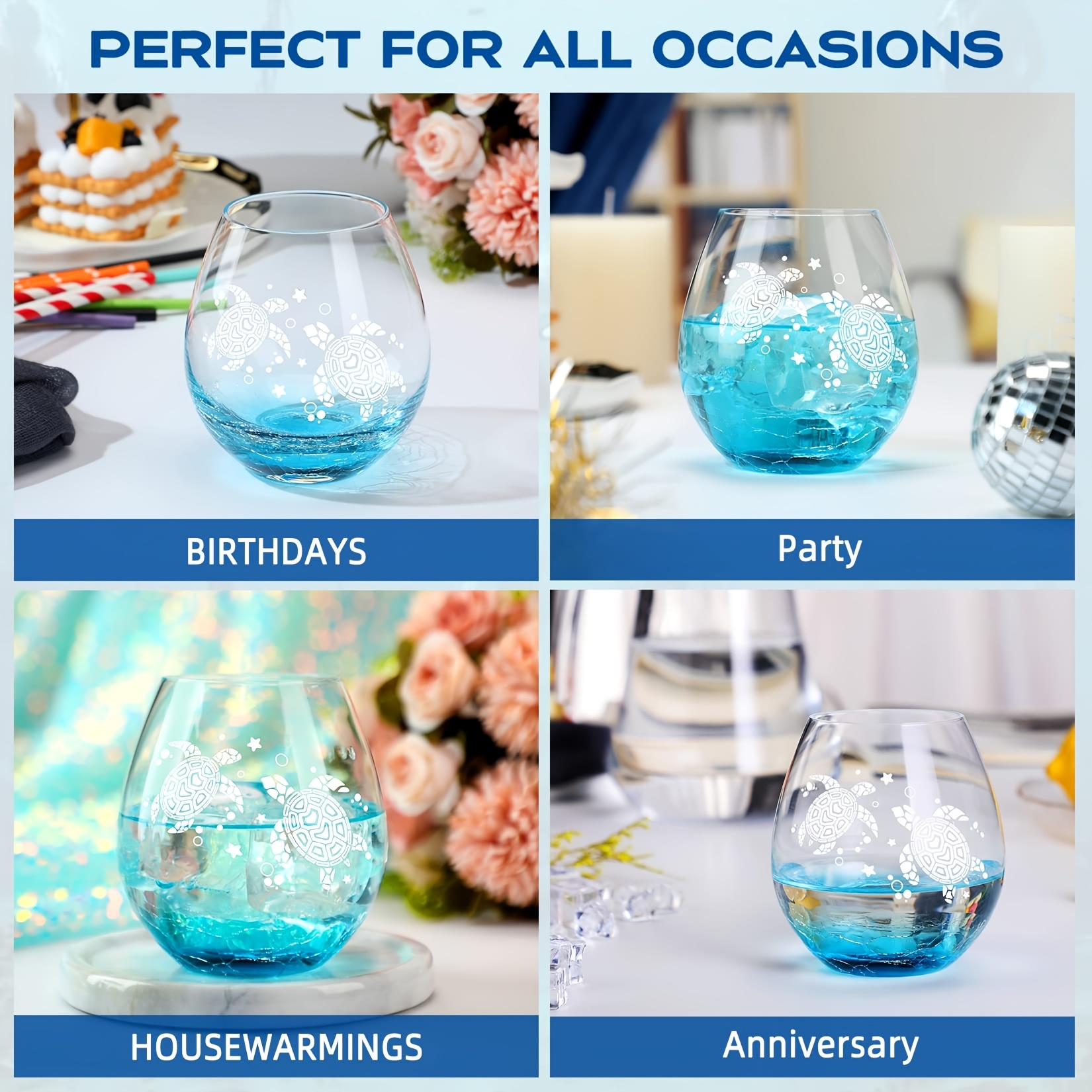 AMAZING WINE GLASSES WITH SEA TURTLE DESIGN: Roraem's sea turtle wine glasses make for exceptional gifts for women or mothers, featuring a unique and delicate design with a beautiful turquoise hue and a striking ice crack effect. These glasses are expertly made using our deep sand-etching technique. Elevate your dining experience with these whimsical and artistic wine glasses, adding a touch of subtle elegance to any beverage and ensuring that every sip is unforgettable.
